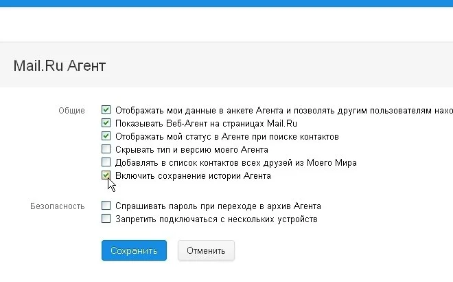 Далее необходимо снять флажок с пункта «Включить сохранение истории Агента» и нажать кнопку «Сохранить».
