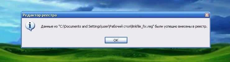 Система сообщит Вам, что данные из файла добавлены в реестр Windows.
